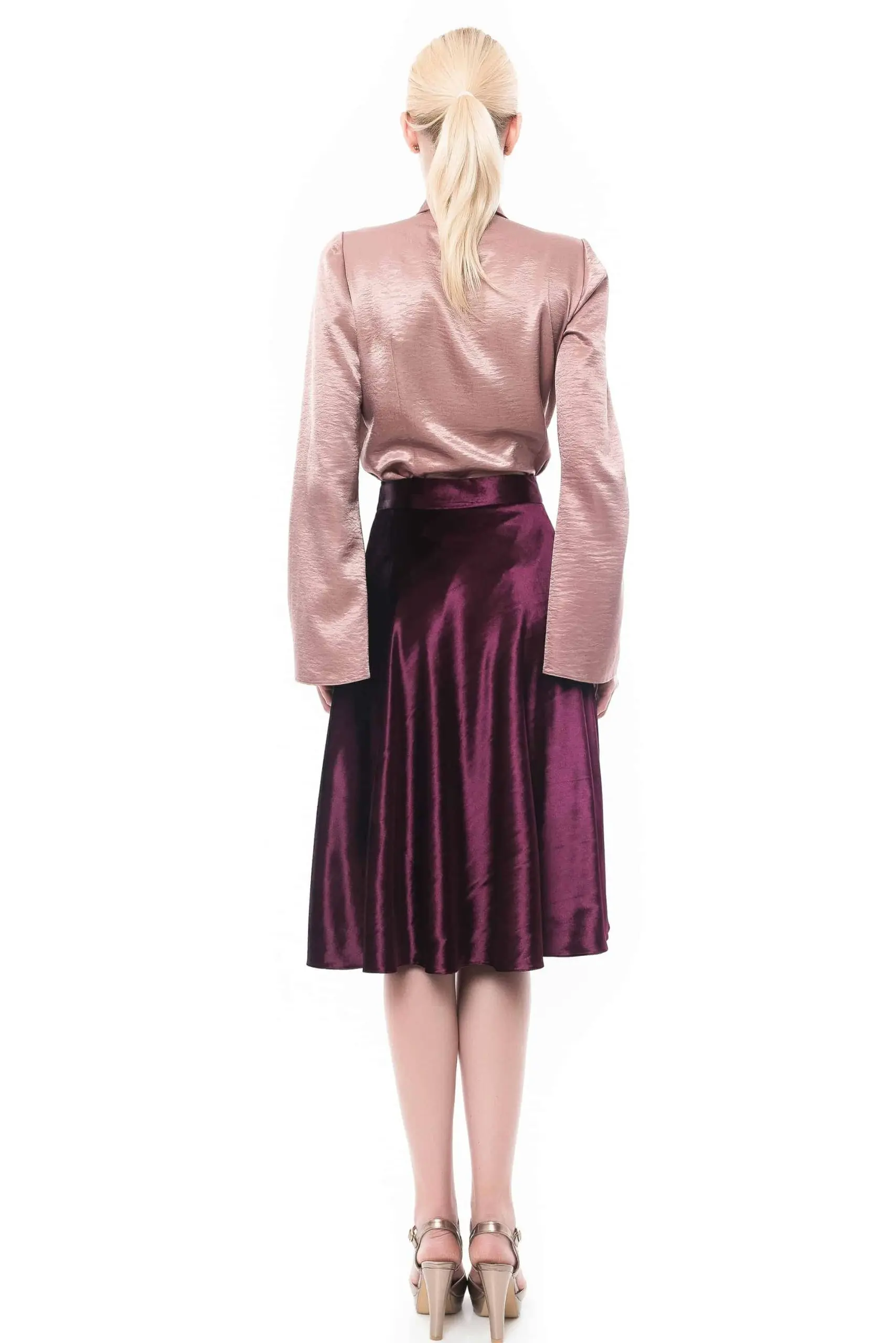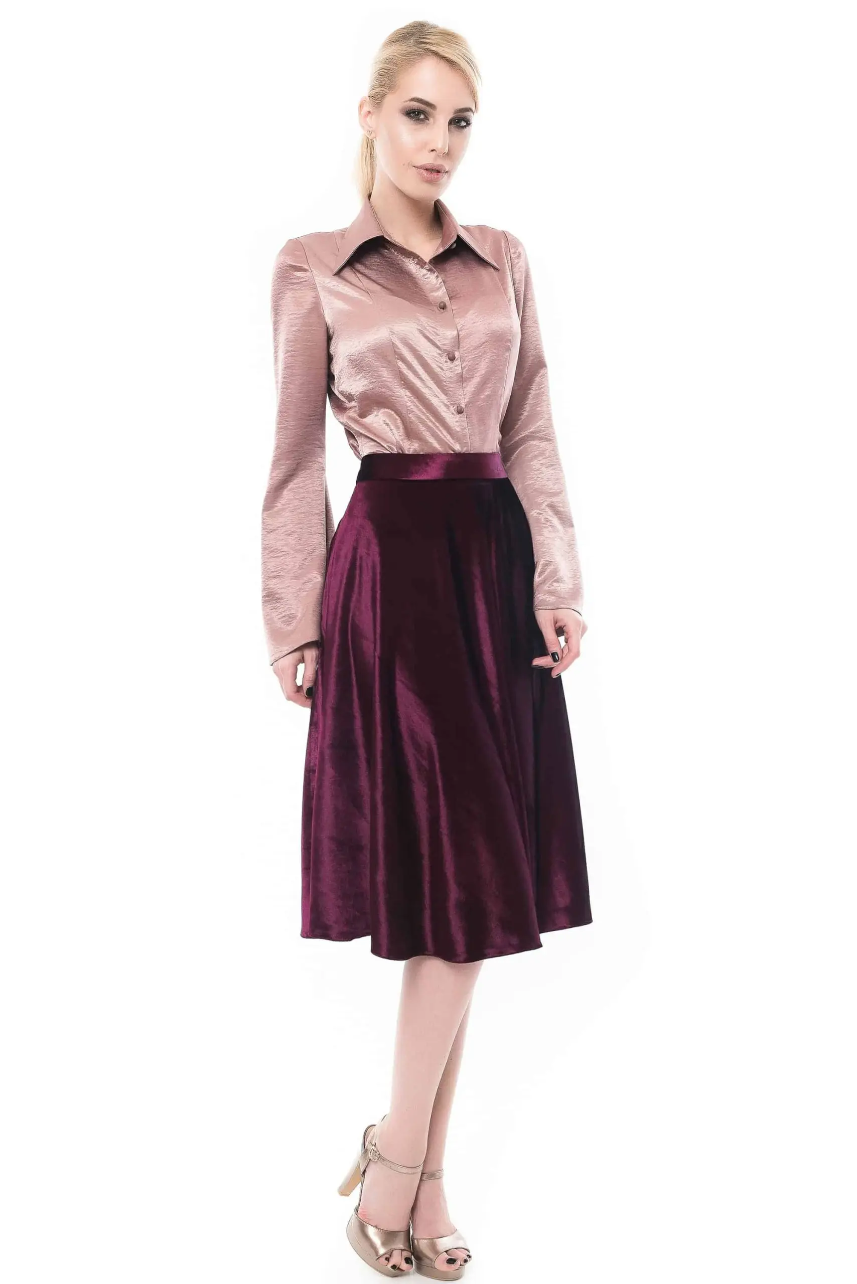 Fusta clos din catifea mov cu buzunare. Creatie vestimentara by Maruca Atelier