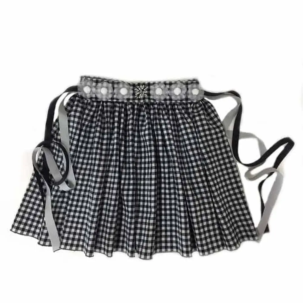 Fusta creata cu fermoar, confectionata din bumbac in carouri si fir argintiu. Fusta pentru fete cu varsta intre 3 si 12 ani. Creatie vestimentara by Maruca Atelier