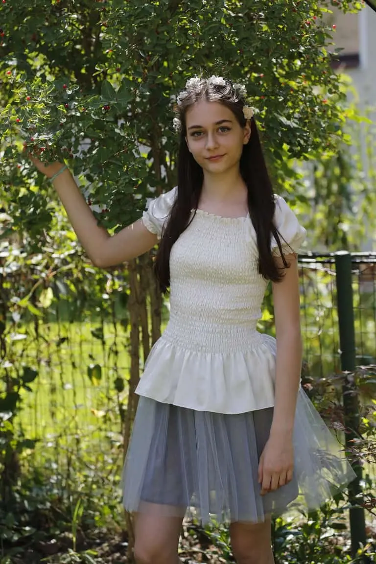 Fusta din tul argintiu cu sclipici. Material: Tul-100%Poliester, Voal-100%Vascoza, Batist-100%BBC Creatie vestimentara by Maruca Atelier.