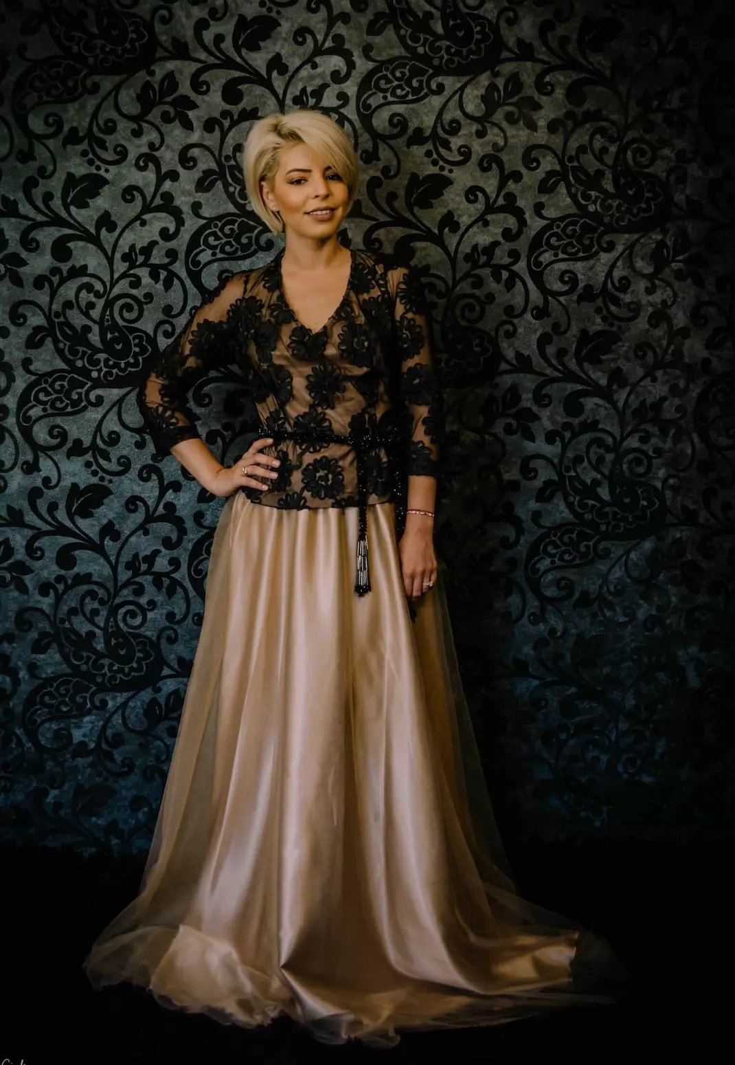 Fusta lunga clos dublu, tulle nude. Tesatura: 100% poliester.