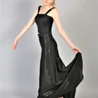 Fusta lunga din matase naturala neagra, cu trena la spate