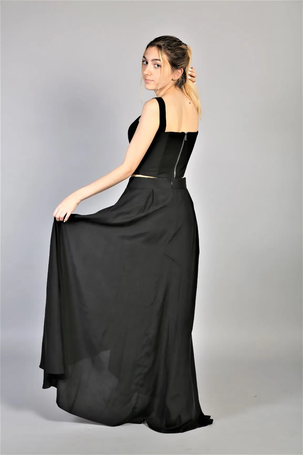 Disponibila intr-o gama variata de marimi, aceasta fusta lunga neagra este gandita pentru a complimenta diverse siluete. Talia este reglabila datorita croielii petrecute, ceea ce ofera un plus de versatilitate si confort. Culoarea – un negru profund – este universal flatanta si usor de integrat in garderoba, mai ales pentru iubitoarele de fuste dama elegante negre sau fuste lungi de vara rafinate.