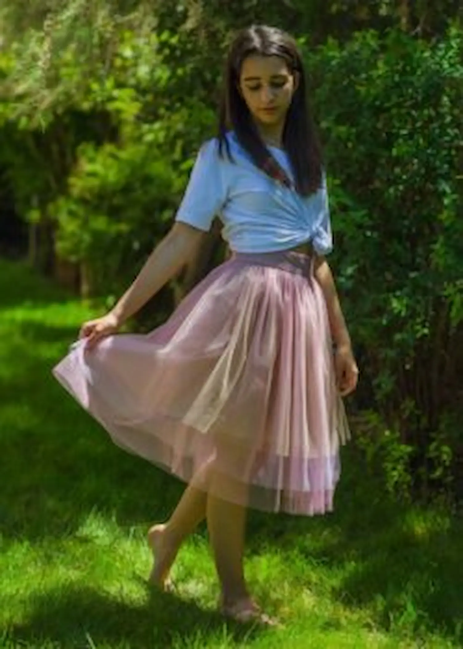 Fusta tulle volane nuante roz pal