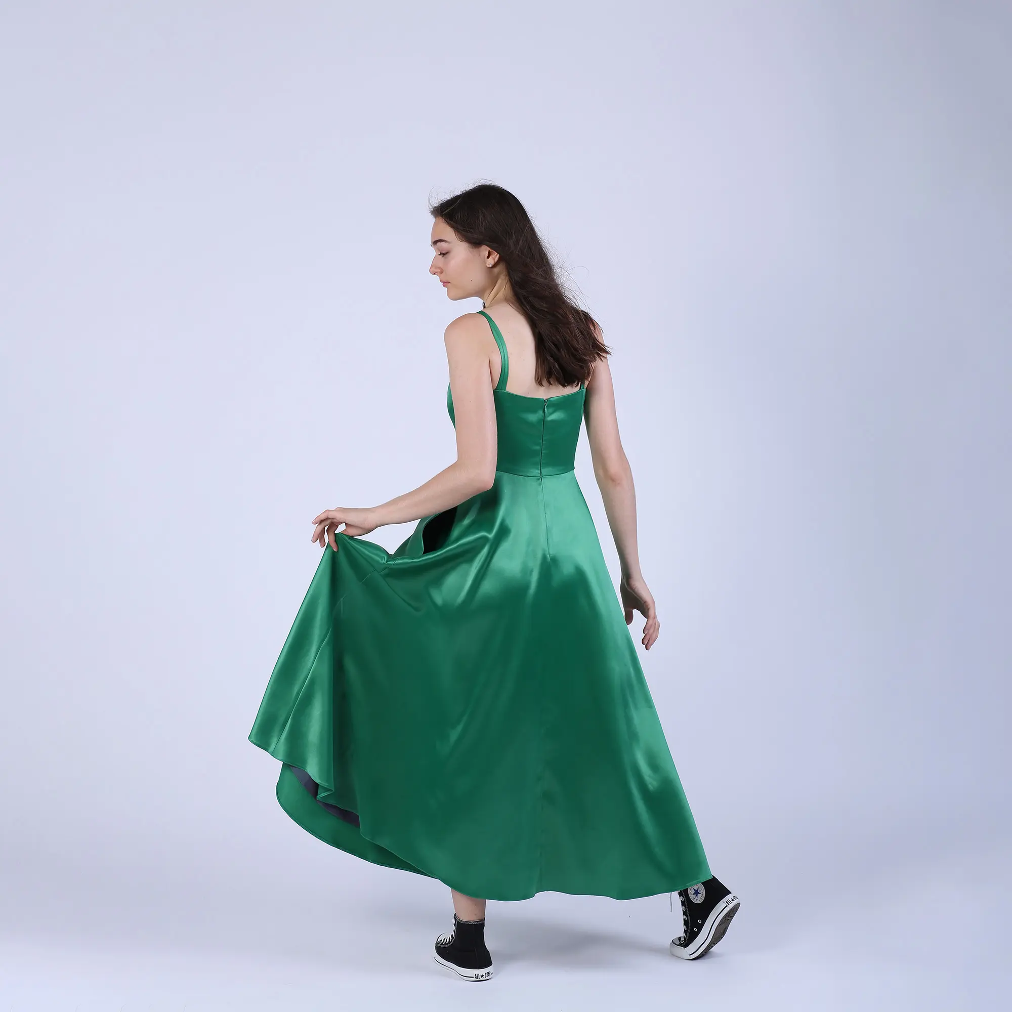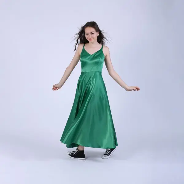 Rochie clos cu bretele din tafta verde. Aceasta rochie este conceputa pentru a accentua orice silueta. Intretinere: curatare chimica Tesatura: 100% poliester Captuseala: 100% viscoza