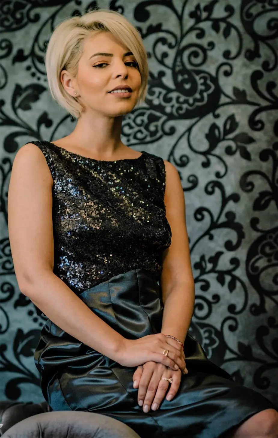 Rochie de cocktail cu bust din paiete. Material -100% poliester. Creatie realizata de Maruca Atelier.