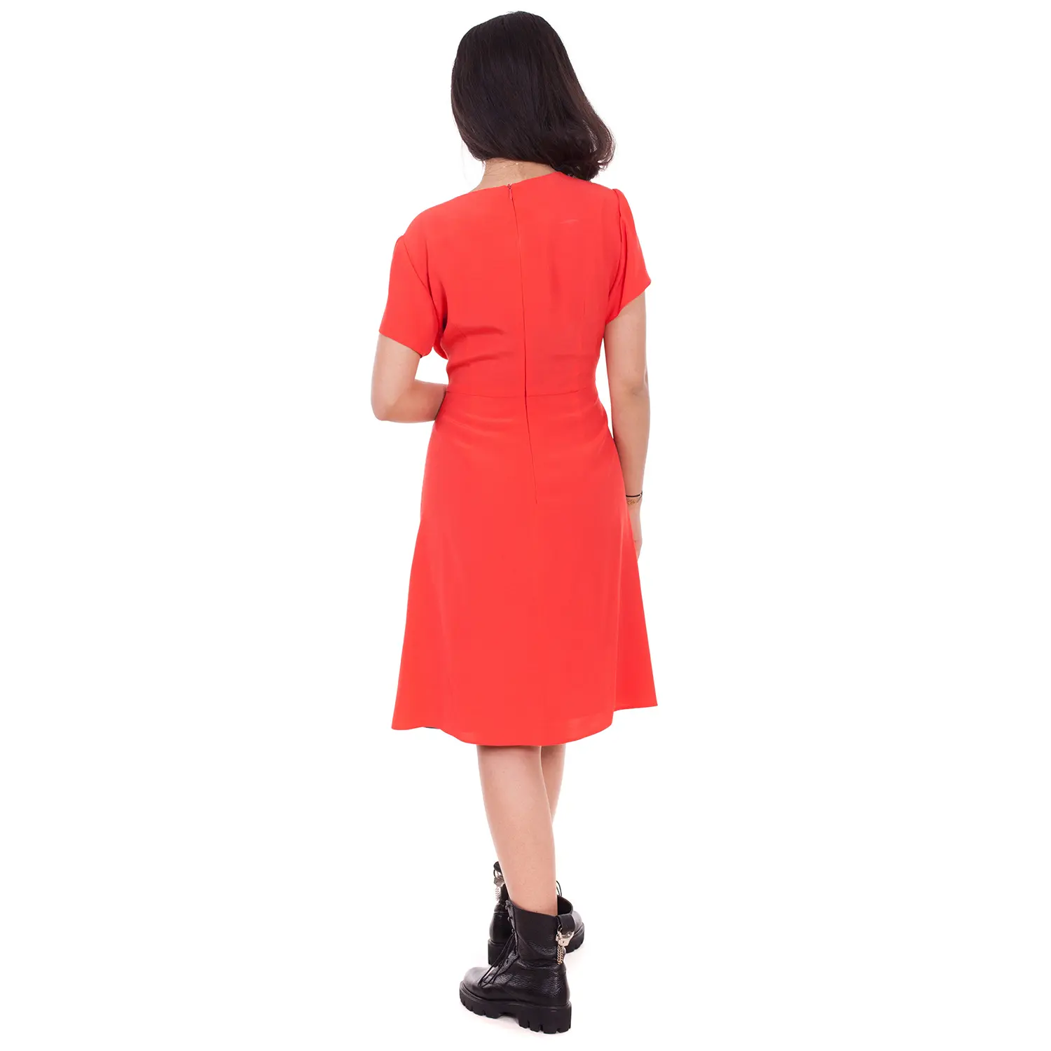 Rochie evazata cu maneca scurta si decolteu rotund din matase corai