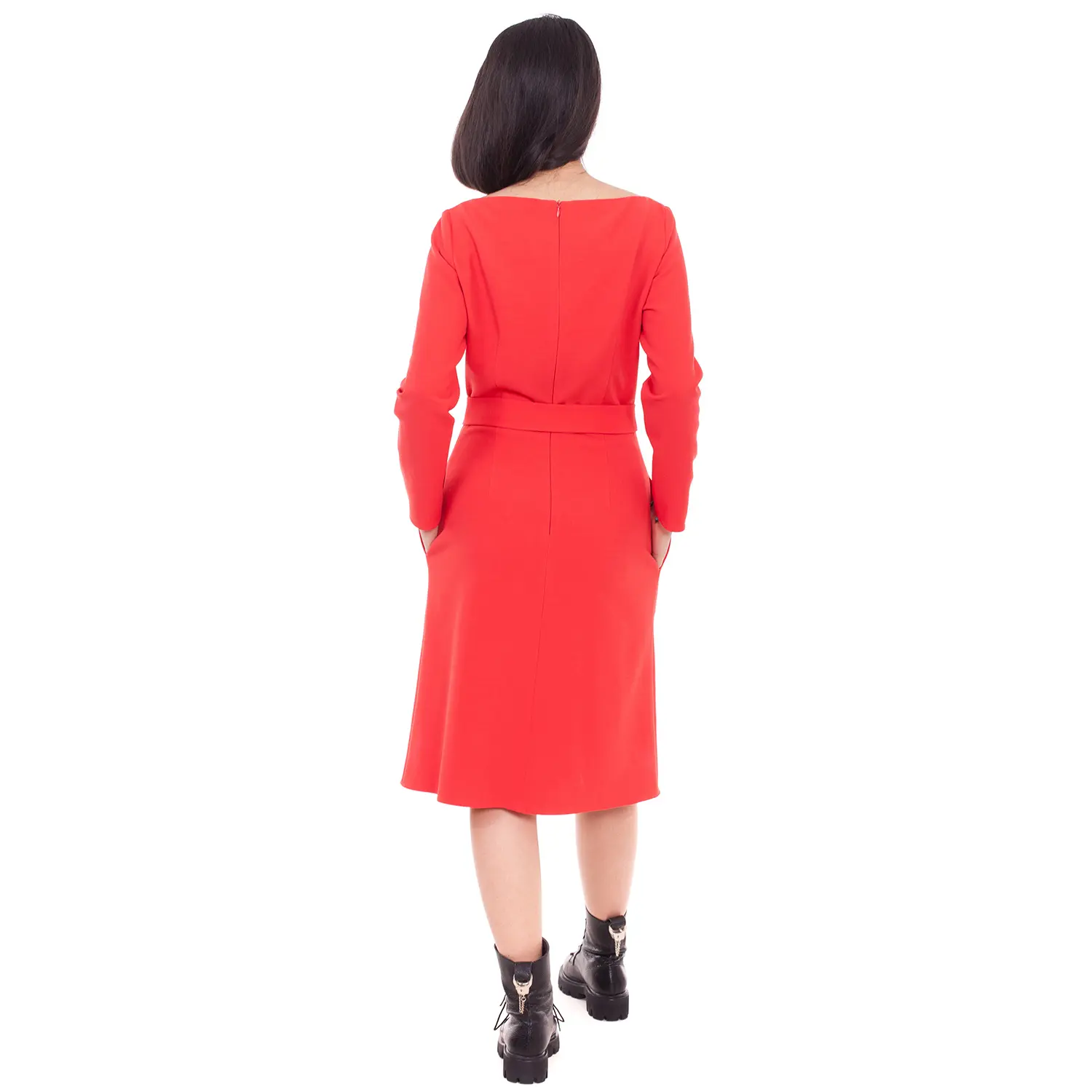 Rochie evazata decolteu barcuta matase naturala rosie. Un croi modern si foarte feminin.