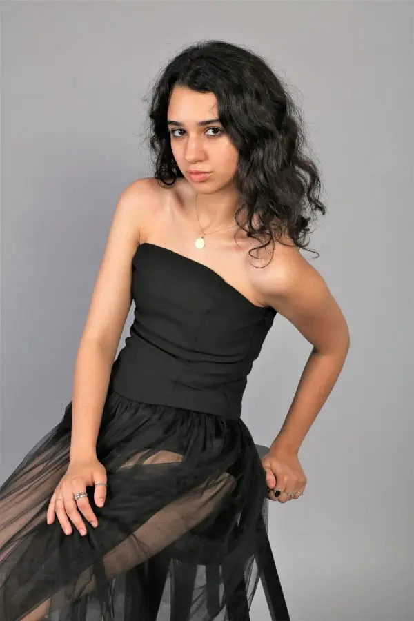 Rochie neagra din tulle cu un top lung din matase naturala. Topul accentueaza frumos talia si pune in valoare silueta.