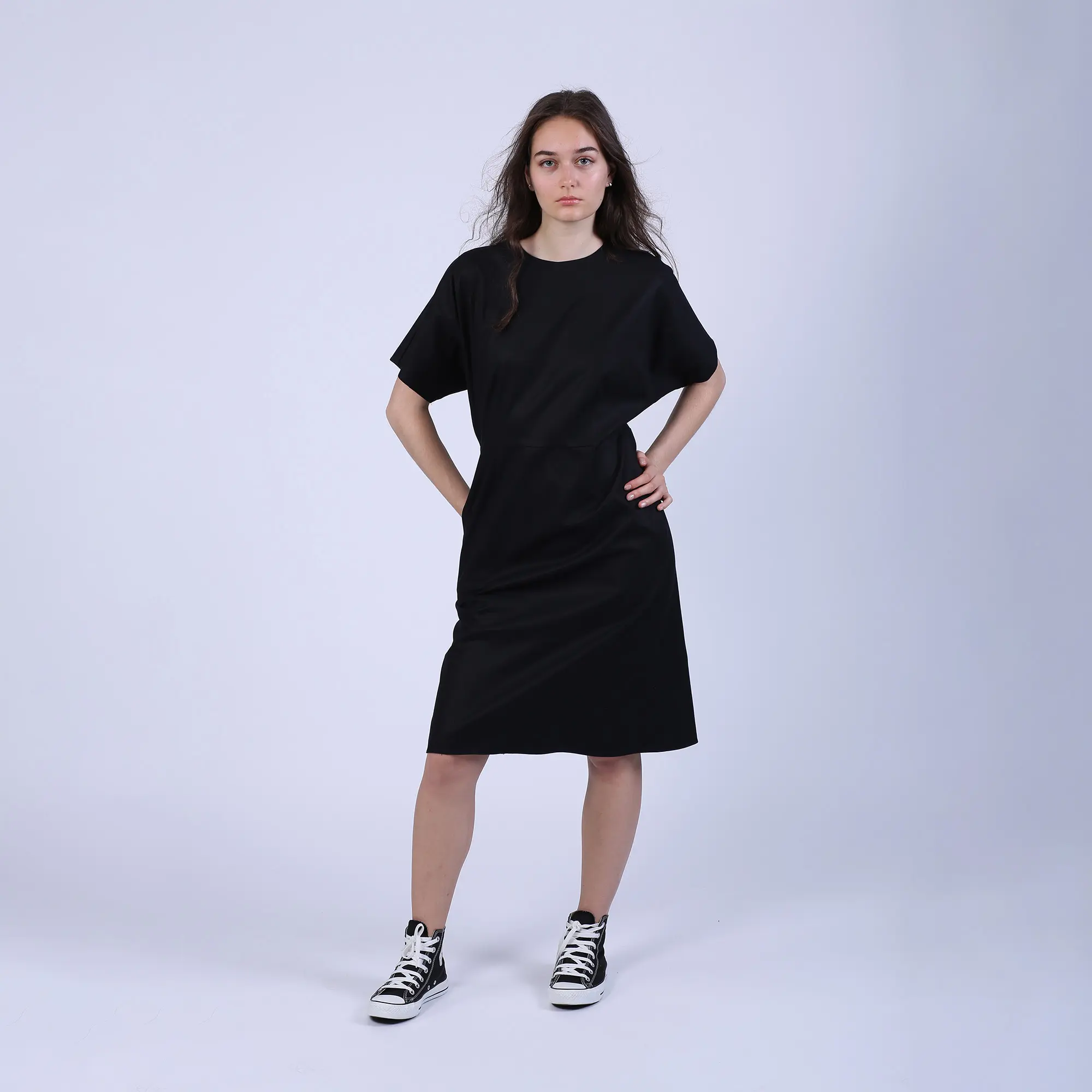 Rochie evazata, cu maneca fluture si spatele gol, din bumbac negru. Rochia are buzunare laterale. Intretinere: spalare manuala. Tesatura: 100% bumbac