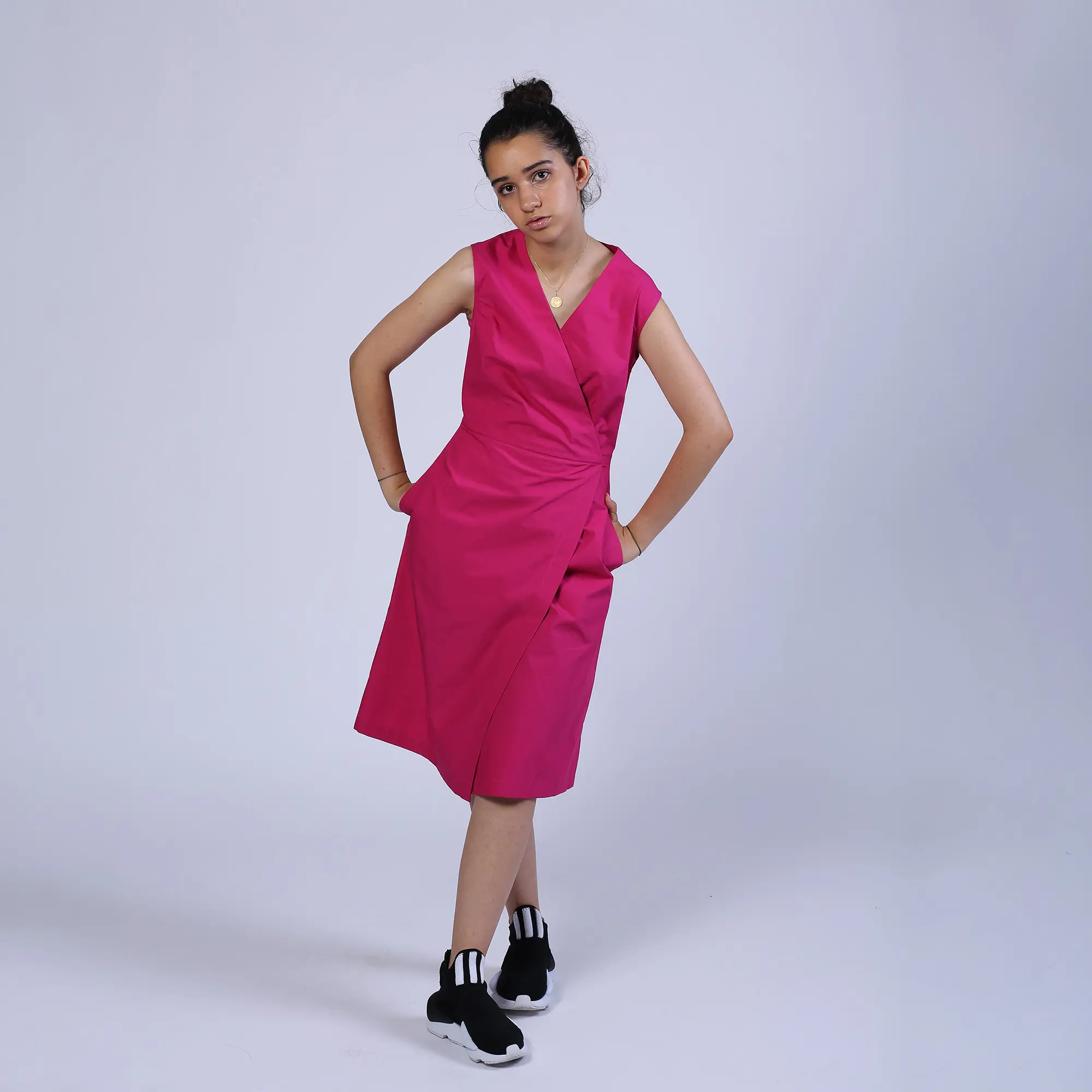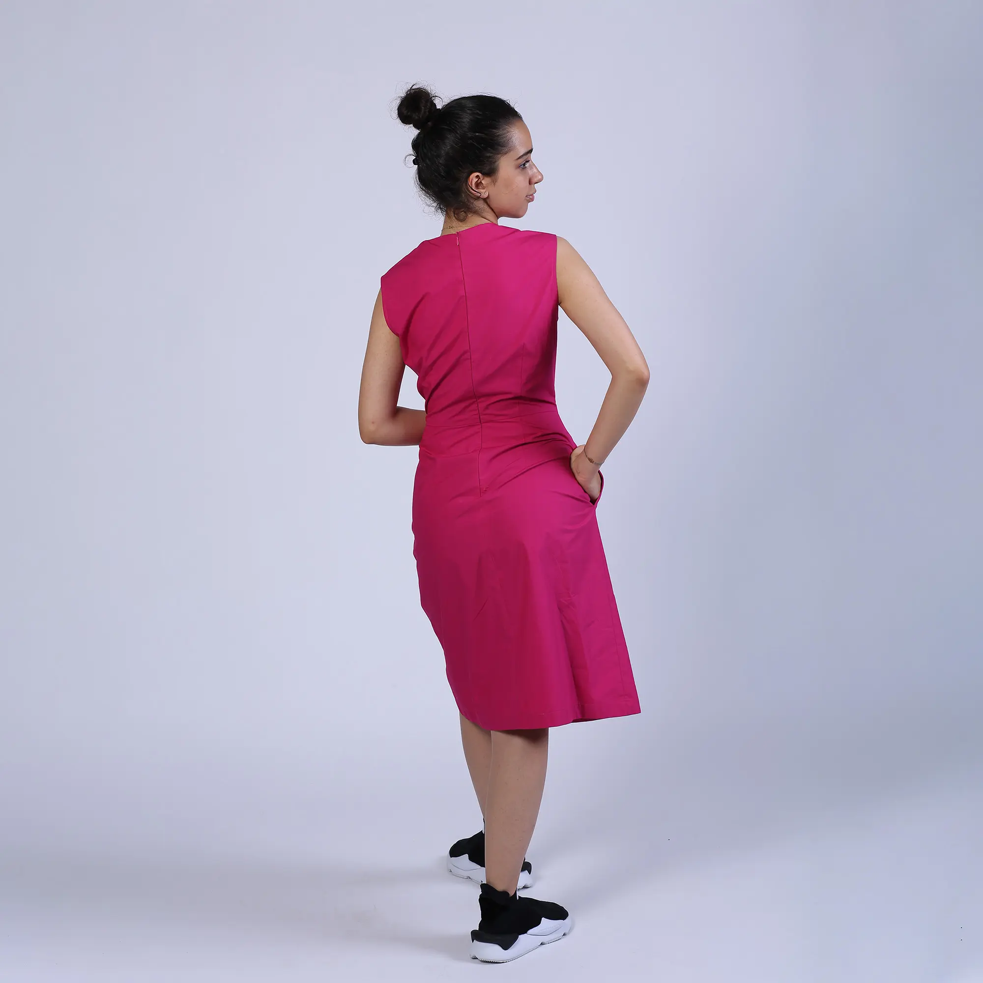 Rochie petrecuta, usor evazata, fara maneci inchisa cu fermoar ascuns la spate. Rochia are buzunare laterale si o poti purta atat cu pantofi sport cat si cu sandale. Intretinere: spalare manuala Tesatura: 100% bumbac