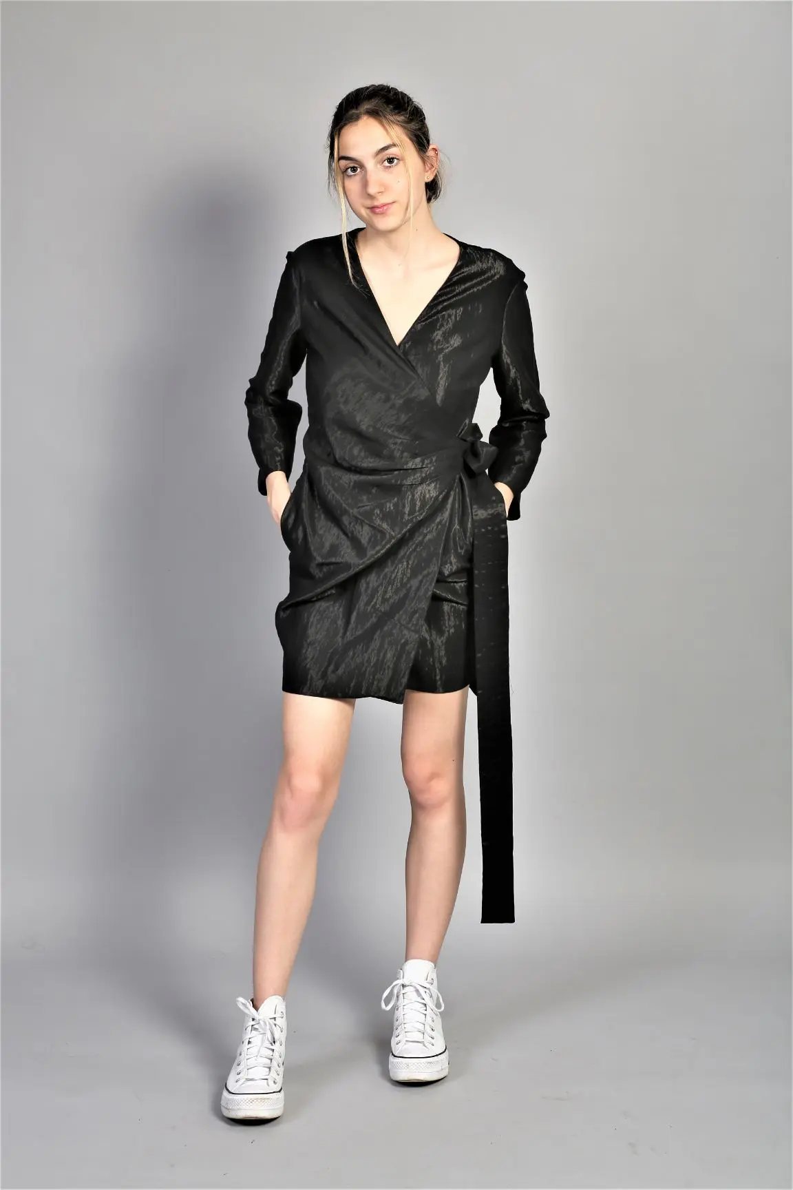 Rochie petrecuta, fronsata din matase naturala neagra.