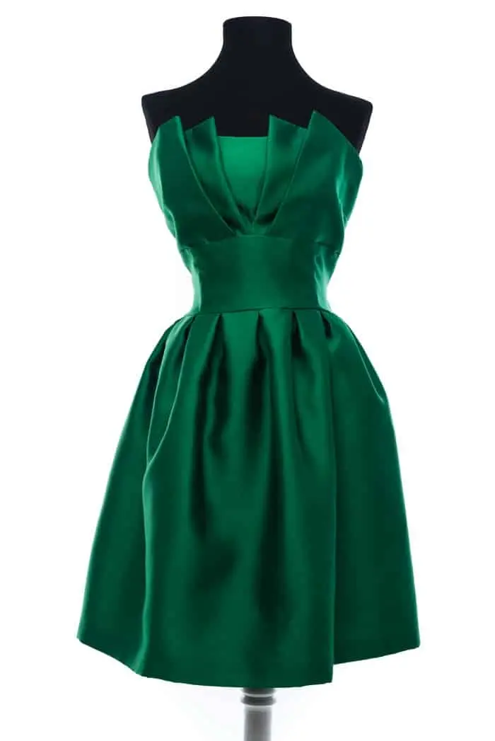 Rochie verde cu pliuri pe corset. Material: 100% poliester. Produs fabricat in atelierul Maruca.