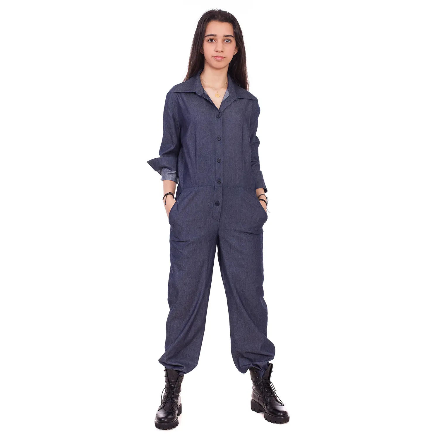 Salopeta Maruca cu nasturi pana in talie si maneca 3/4. Este realizata din denim si are un croi relaxat si tineresc. Ideala pentru orice tipologie corporala.