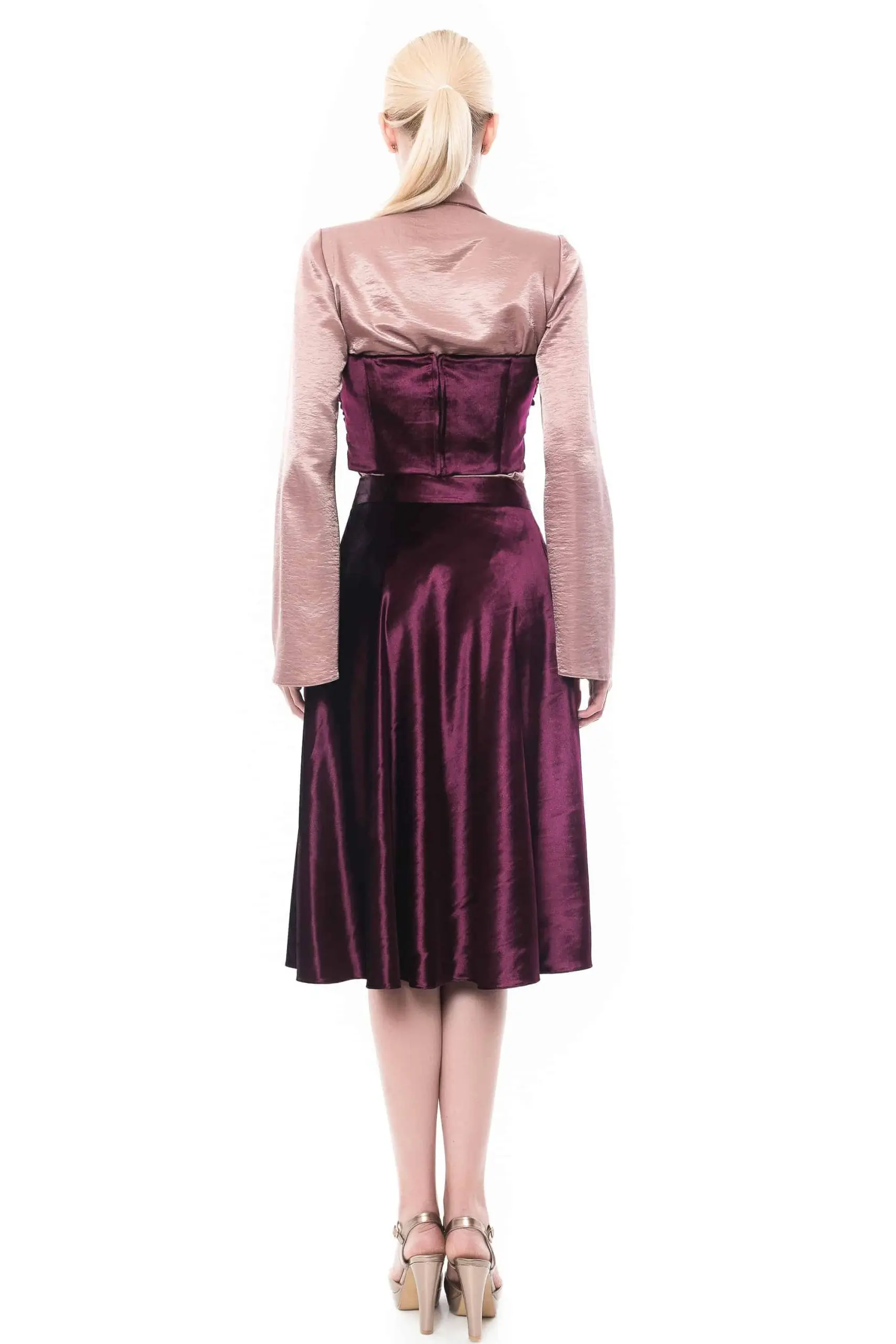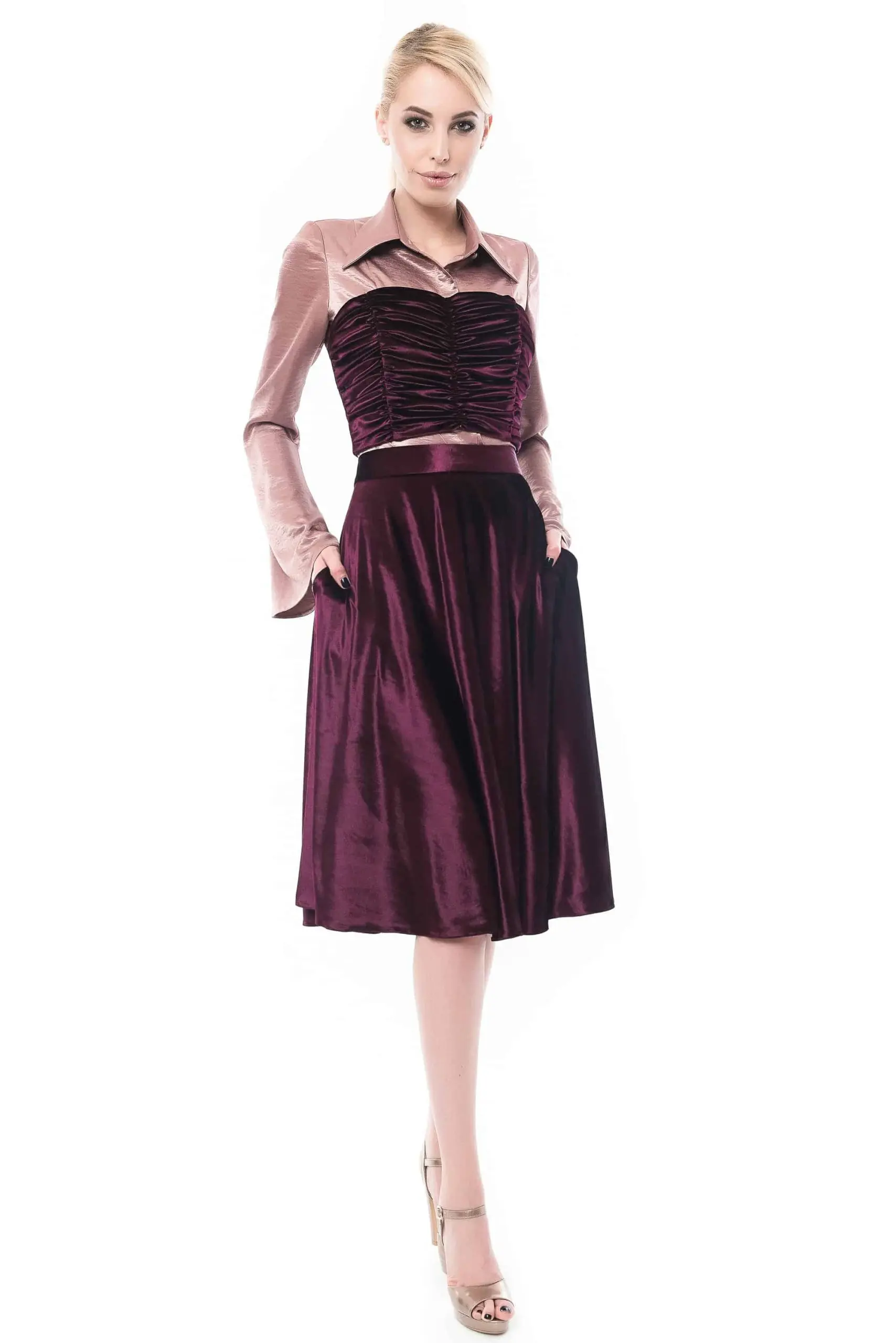 Top-Corset fronsat din catifea mov inchis. Creatie vestimentara by Maruca Atelier