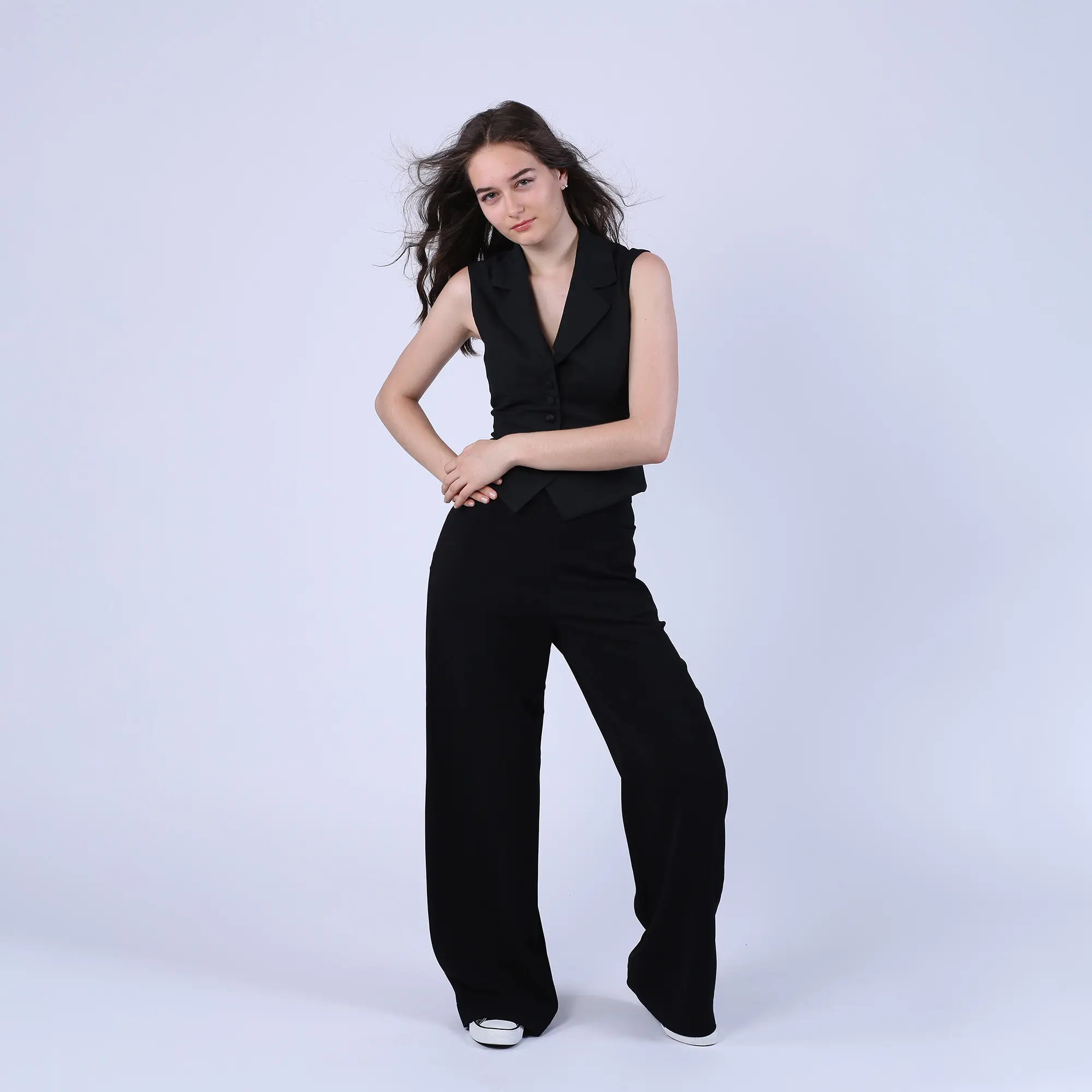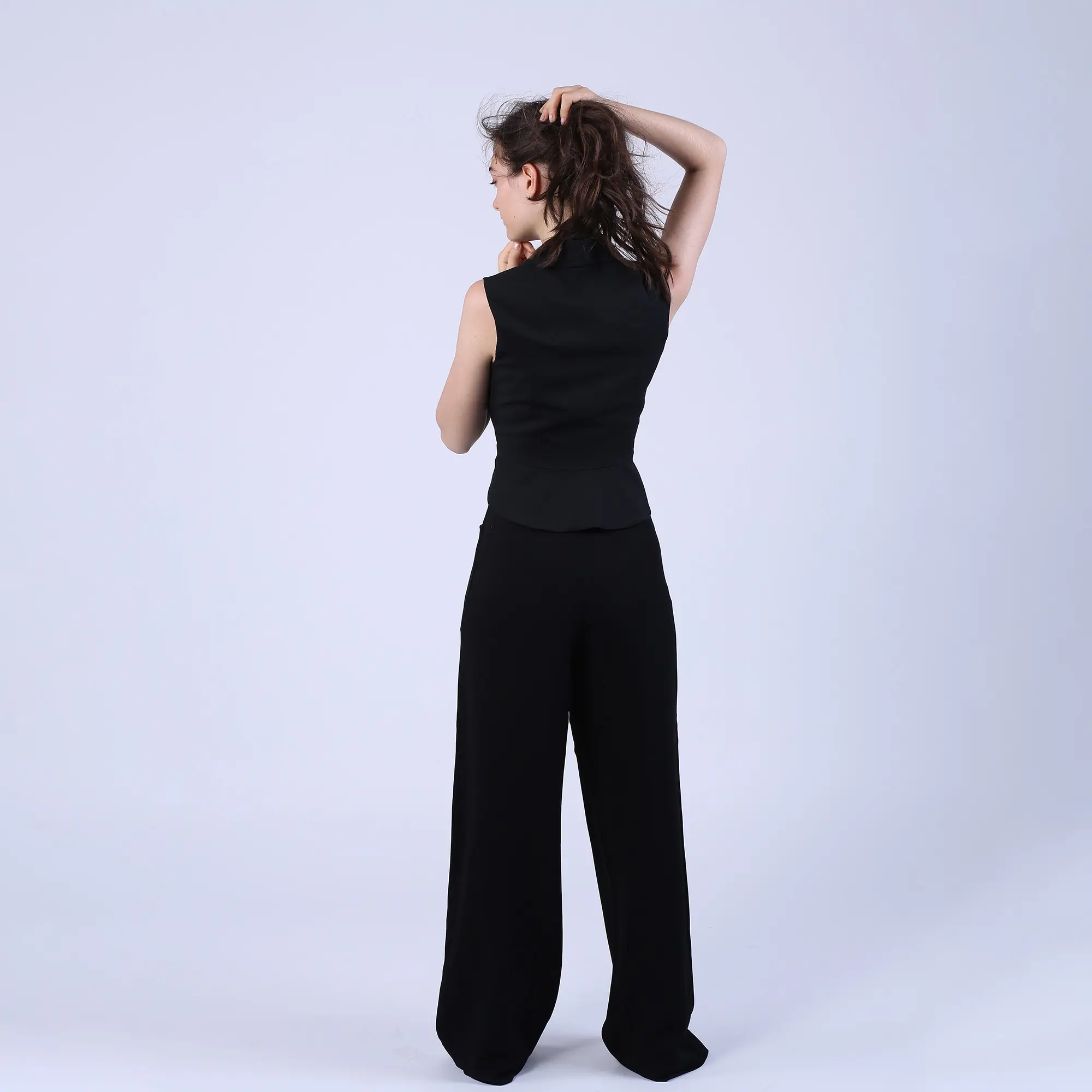 Vesta Maruca cu revere si peplum la spate din stofa neagra. O piesa foarte versatila care poate fi purtata atat la o tinuta de zi, cu fusta sau pantalon, cat si la o tinuta de seara.